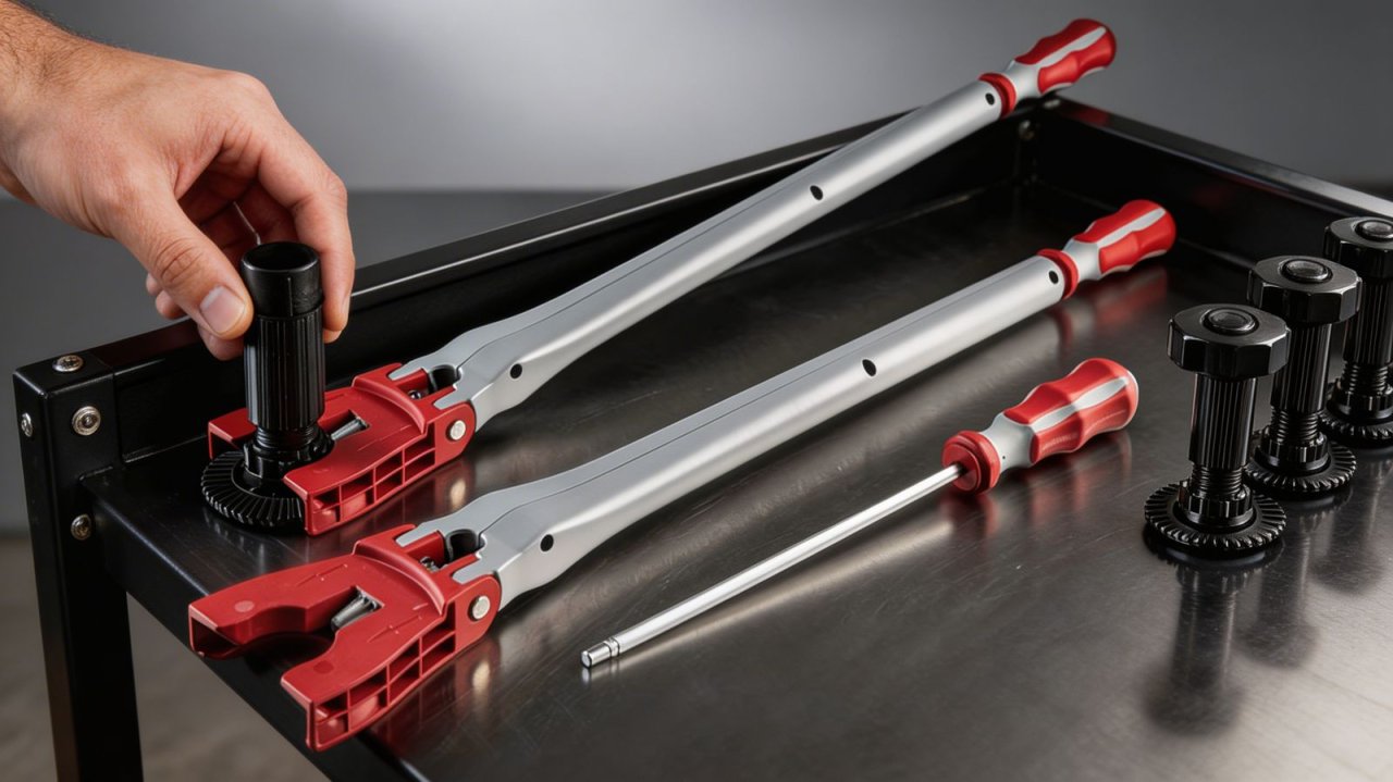 Uzun saplı ayarlama aleti baza ayağına yerleştirilir ve öne eğilmeye gerek kalmadan dik duruşta döndürülerek istenilen yükseklik ayarlanır. İşlem el ile veya akülü tornavida ile yapılabilir.
