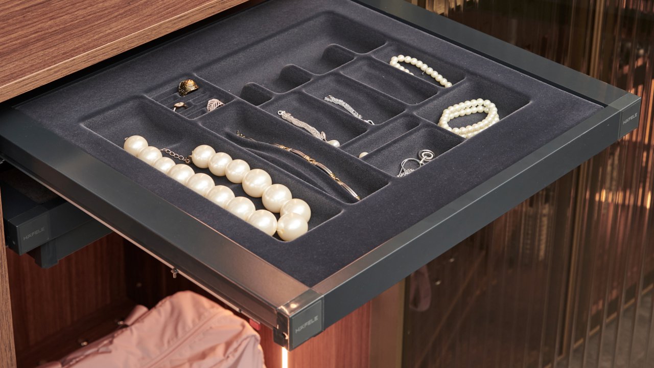 Eşsiz bir depolama çözümü olan DRESS LINE Aksesuar Çekmecesi, atkı, bere, eldiven ve şal gibi pek çok giysi aksesuarınızı kolayca düzenler. Ayrıca, Çekmece İçi Aksesuarlığı ile kolye, bileklik ve yüzük gibi değerli eşyalarınızı özel bölmelerde saklayabilirsiniz.