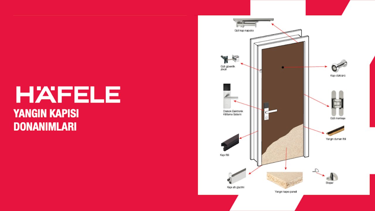 Häfele'nin yangın kapılarında kullanılan teknik donanımlar: