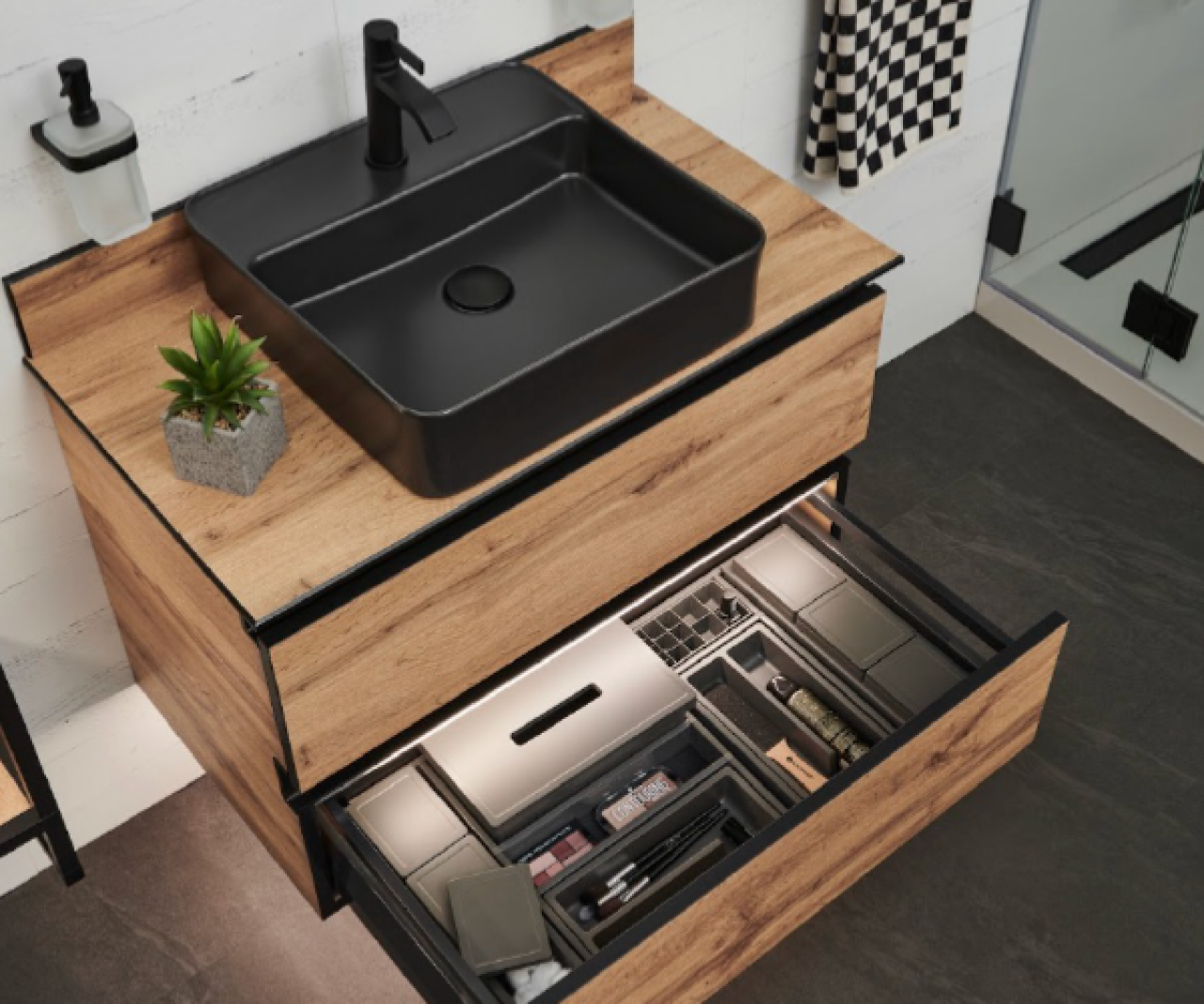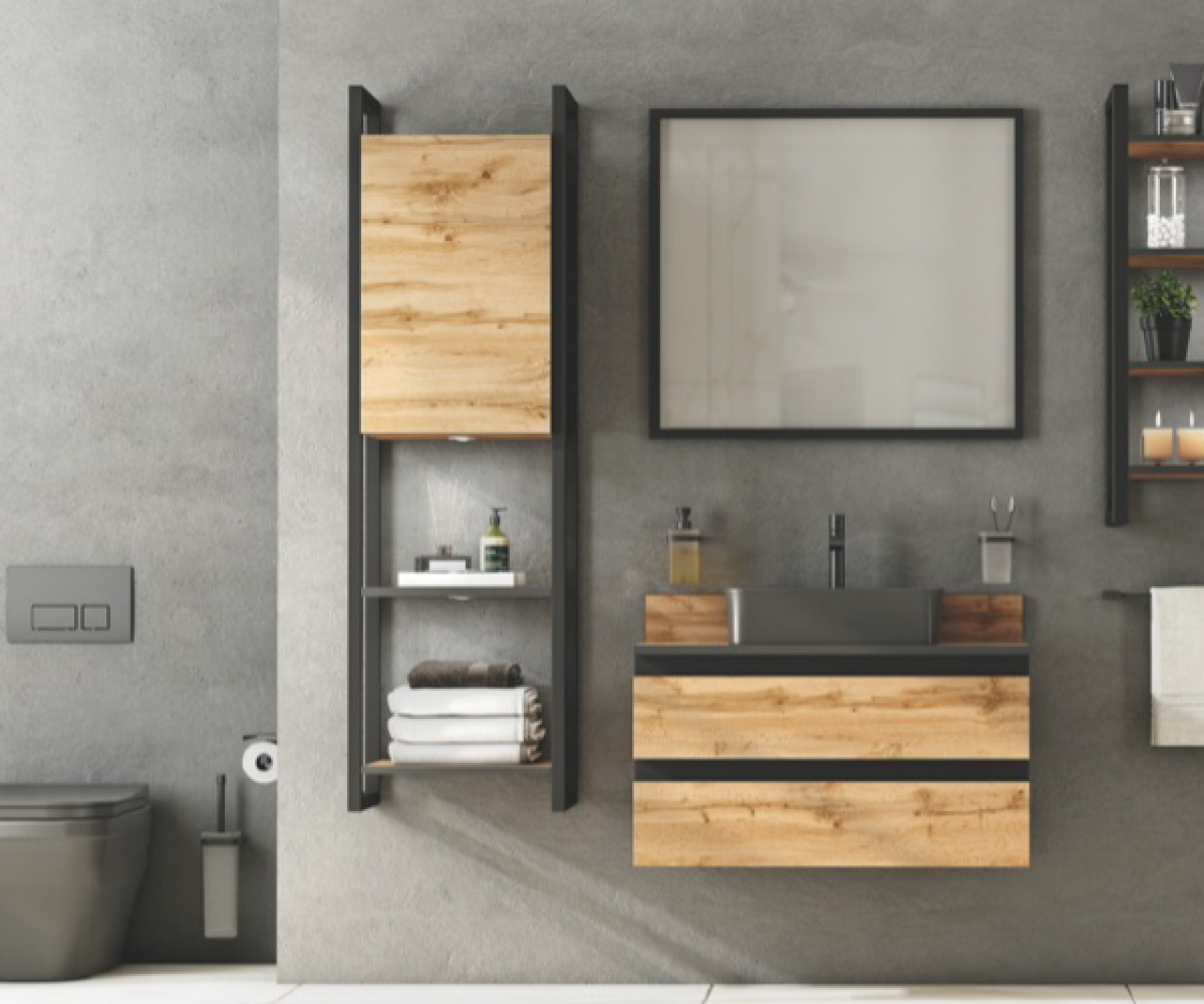 Hayata dair sahip olduğunuz iddialı ve net bakış açısını, vitrifiye ürünleri ve banyo aksesuarları gibi unsurlarda köşeli formları tercih ederek dekorasyonunuza yansıtabilirsiniz.