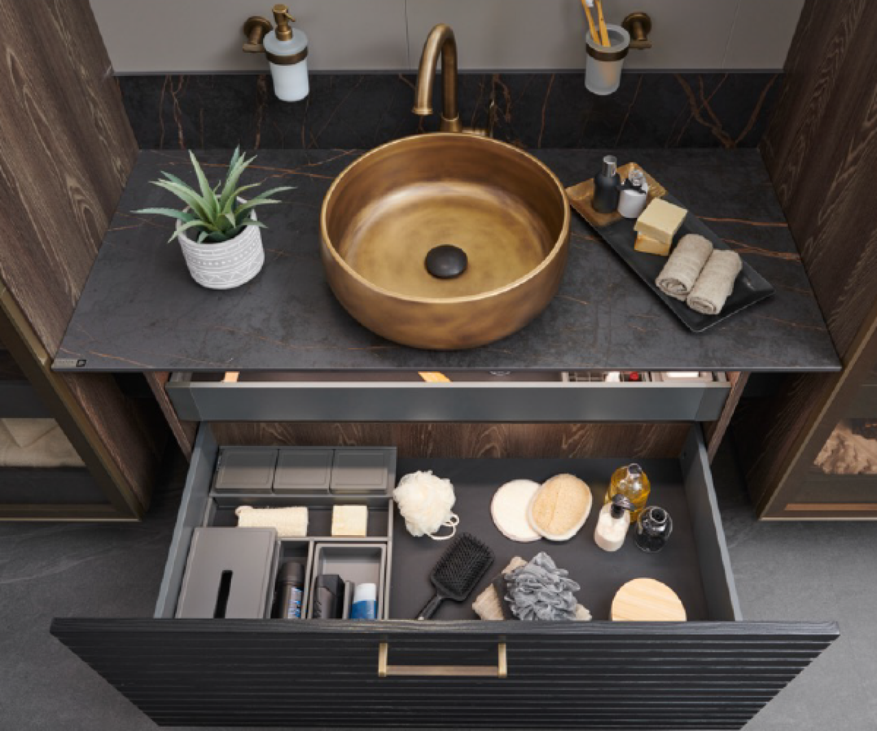 Çekmecelerimiz ve çekmece içi organizasyon sistemlerimiz ihtiyaç duyduğunuz kozmetik ürünler ile güzellik ve sarf malzemelerine rahatça erişebilmenizi sağlar. Banyonuzda enerjinizi yenilemenizi pratik hale getiren bu çözümler kullanıcı deneyimi odaklı yaklaşımımızın ürünü.