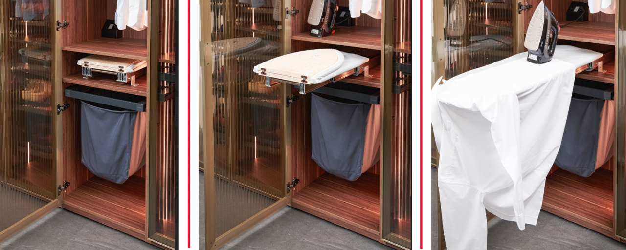 Çekilebilir ütü masası ile çekilebilir ayna bu çözümlerin ideal örnekleri. Çekilebilir ütü masası ihtiyaç duymadığınızda rahatça ortadan kaldırabilmenizi sağlarken çekilebilir ayna konforunuzu artıracak bir kullanım kolaylığına sahip.