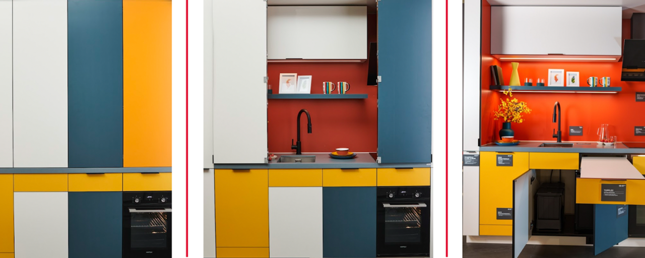 HIZLI VE ETKİNMutfaklar kullanım amaçları itibarıyla hızlı ve dönüşebilen çözümlere en çok ihtiyaç duyulan yaşam alanları. Bu açıdan dönüşebilen çözümler hayati bir öneme sahip. |