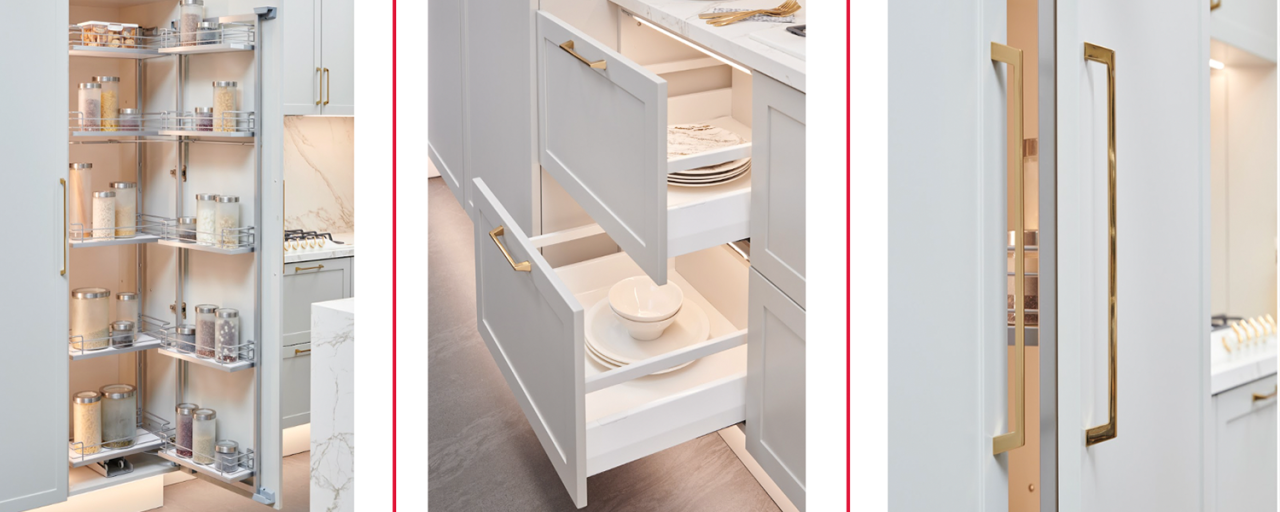 Koleksiyonlarımızın gizli kahramanları olan boy, köşe ya da tezgâh altı kiler ve çekmece içi organizasyon sistemleri, şişelik, tepsilik, çatal kaşıklık ve kapak düzenekleri de kullanım sırasında yine aynı renk ahengiyle sahneye çıkarlar.