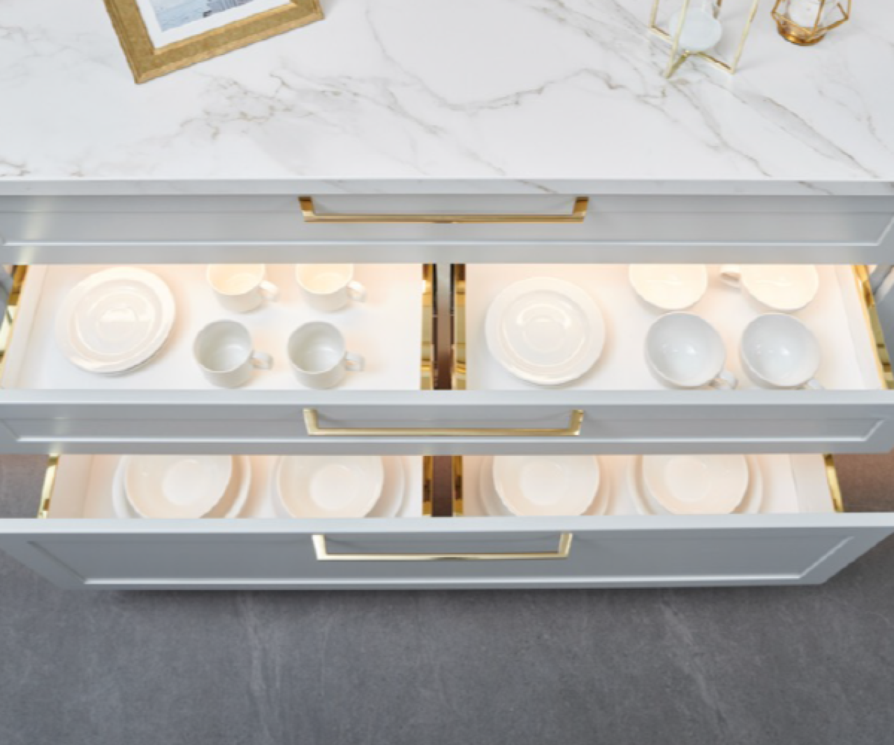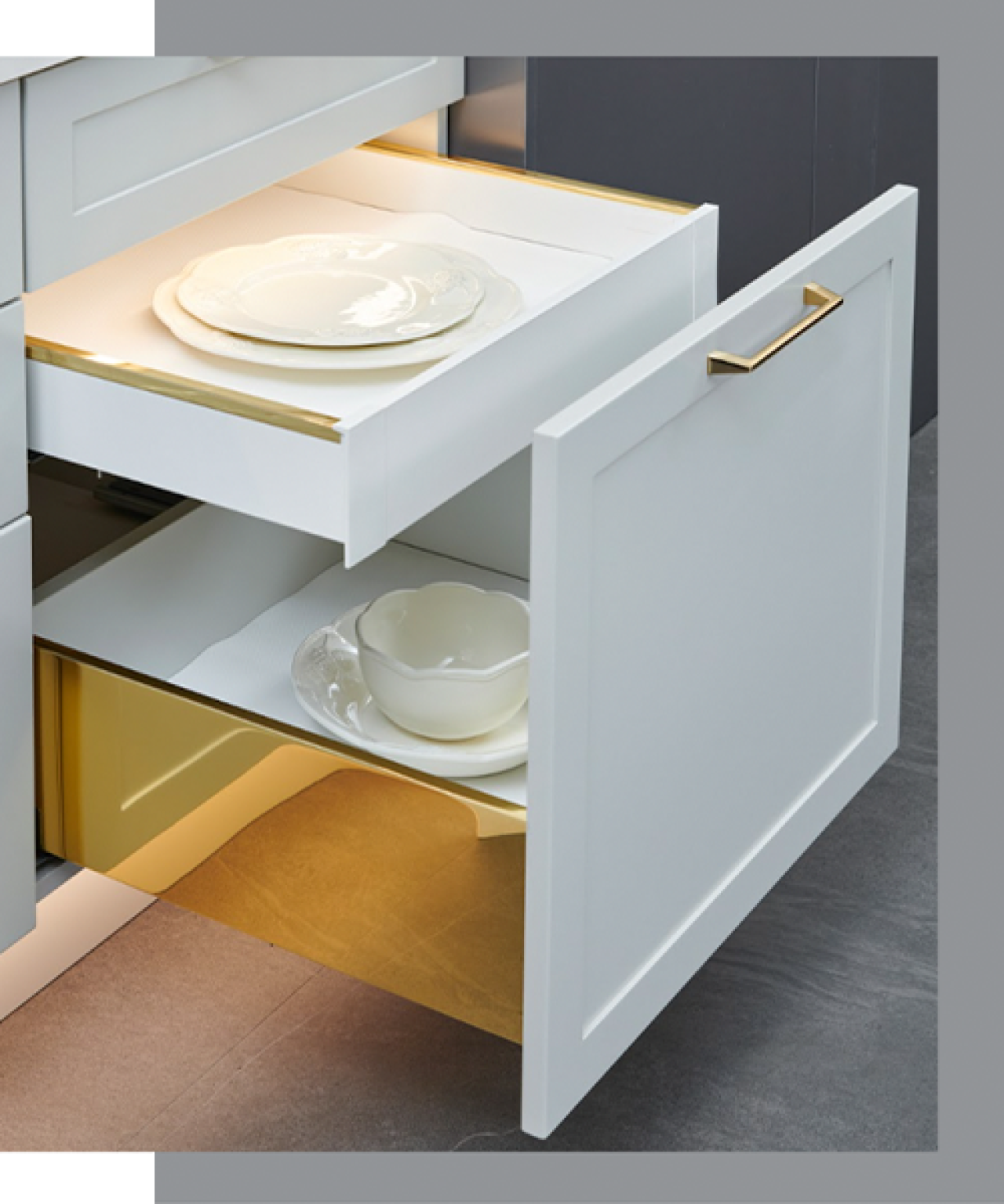50.000 saat sorunsuz çalışan LED aydınlatma sistemlerimiz kaliteli ve uzun ömürlü çözümlerimize ideal bir örnek. Dolap kapaklarındaki menteşelerden çekmecelerdeki ray sistemlerine kadar tüm detayları aynı yaklaşımla geliştiriyoruz.
