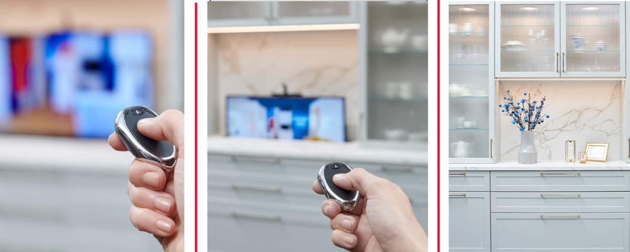 Konuklarınızı ağırlamak istediğinizde televizyonunuzu uzaktan kumandayla mobilyanızın içine saklayıp ortadan kaldırabilmenizi sağlayan TV Lift sistemimiz sohbetlerinizi daha keyifli kılacak bir çözüm. Yine uzaktan kumandayla ışıkları farklılaştırıp yaşam alanınızın duygusunu değiştiren Loox Aydınlatma Sistemleri ve açılır masa mekanizması Häfele’nin ihtiyacınızı gözeten çözümleri arasında.