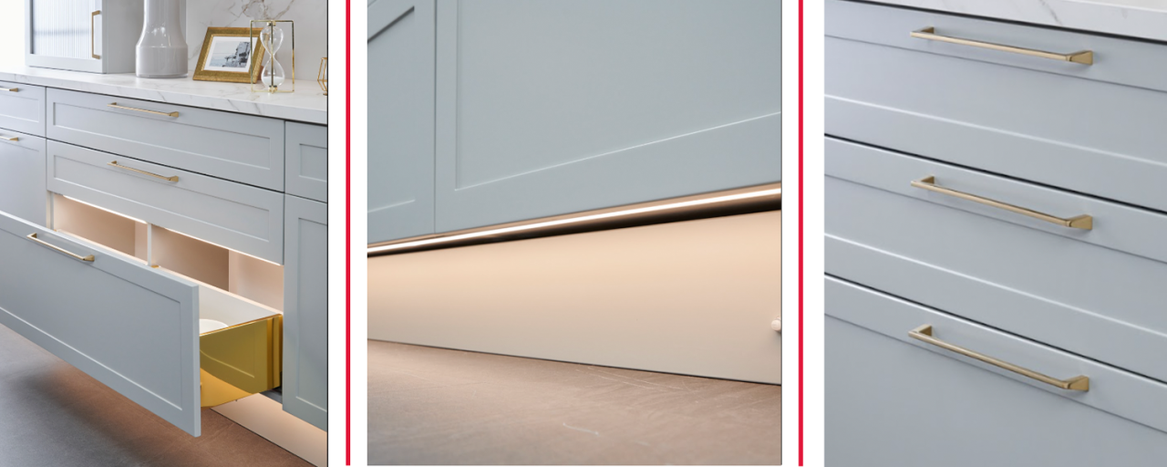 Häfele olarak renk, stil ve form uyumunu titizlikle gözeterek yükselttiğimiz estetik değerler yaşam alanı tasarımlarımızda da hayat buluyor. Bunu vitrinden masaya, çekmece sisteminden mobilya ayakları ile kulplarına dek görebilmek mümkün.