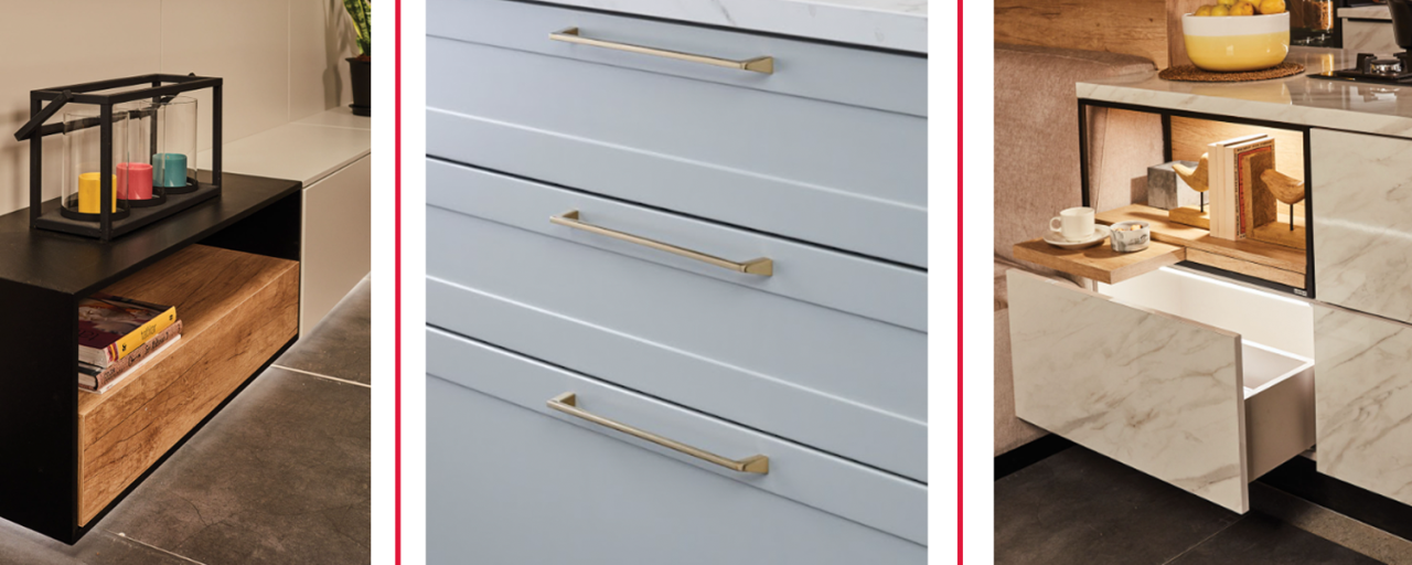 Häfele’nin yaşam alanınızda değerlendirebileceğiniz vitrini bu konuda ideal bir çözüm. Verimli depolama olanağı sunan çekmece sisteminin özel tasarım kaliteli ray mekanizması uzun ömürlülüğünün de güvencesi.
